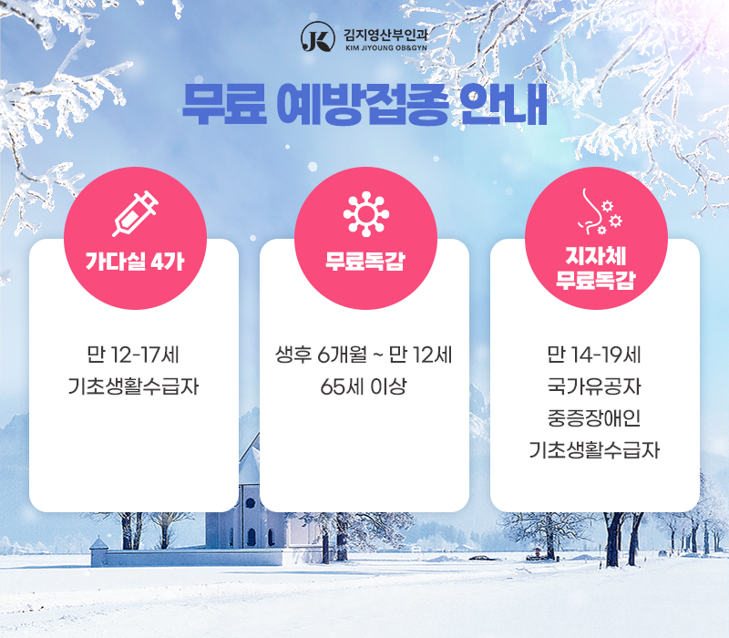 * 만20세 이상 여성은 2년마다 무료 자궁경부암 검진이 가능합니다.